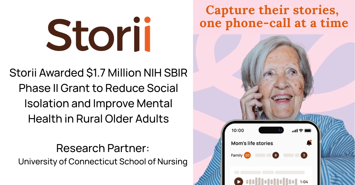 This award will fund a rigorous clinical trial to validate Storii’s reminiscence-based approach to combating social isolation. The study, supported by the University of Connecticut, will focus on improving mental health and strengthening caregiver connections in rural communities where isolation and access barriers are most severe.